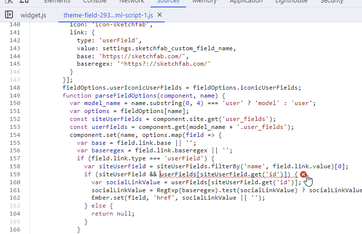 Specifically here: https://github.com/weallwegot/discourse-social-links-clickable/blob/master/common/head_tag.html#L146