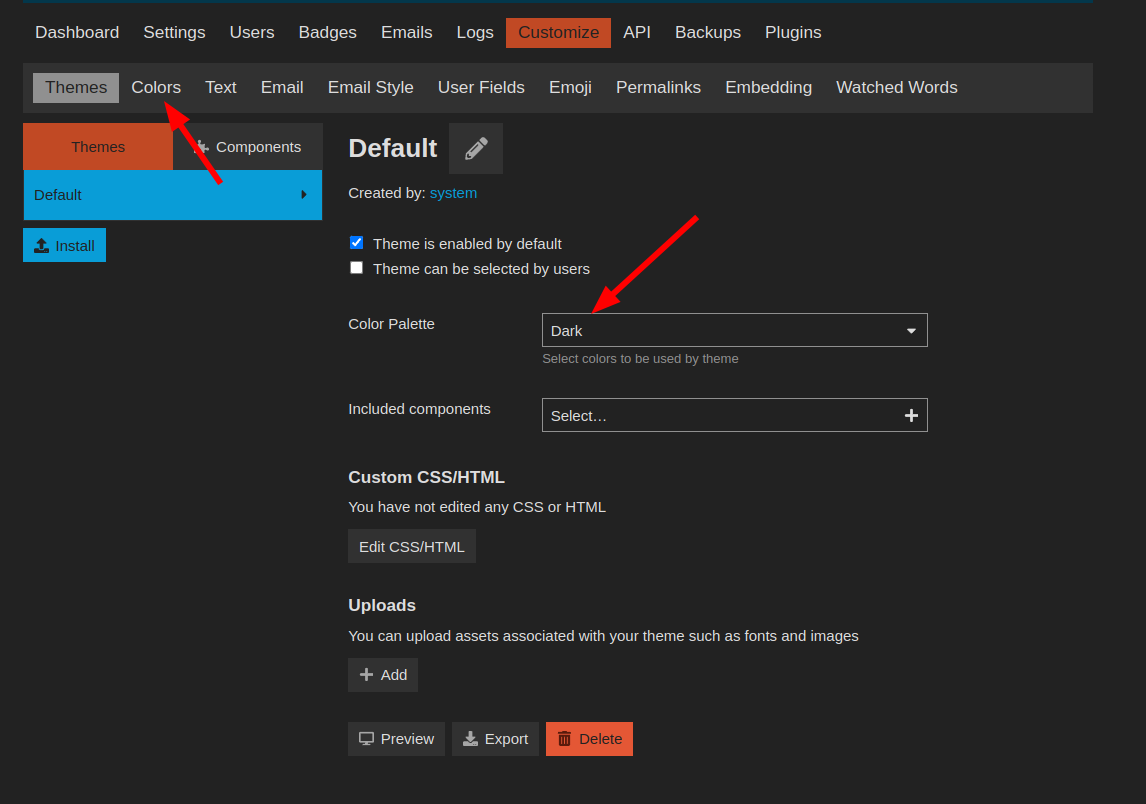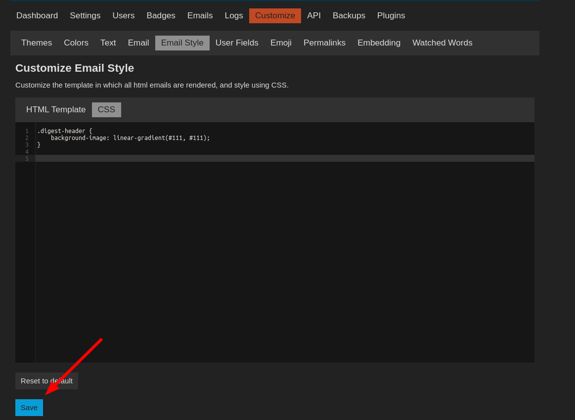 Note that the colors added to the linear-gradient should both be the same. They should match the value that’s set for your default theme’s color palette’s “header background” color: