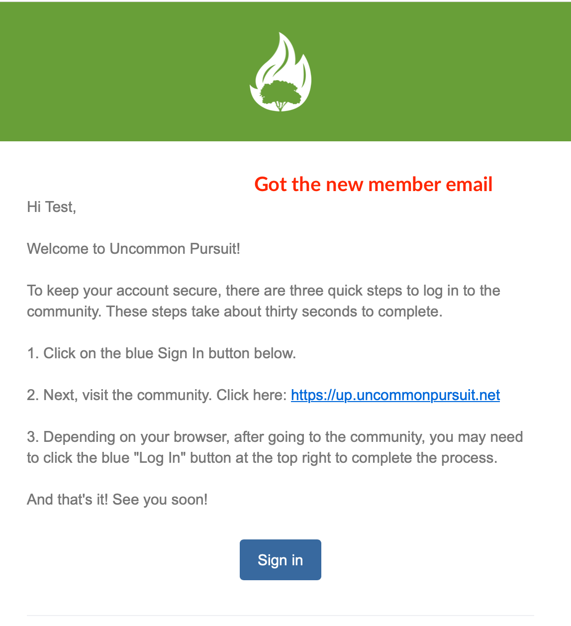 If the email needs to be verified: When you get the new member email, just click on the blue “Sign In” button, and be automatically logged into the community. (Don’t go to Memberful at all).