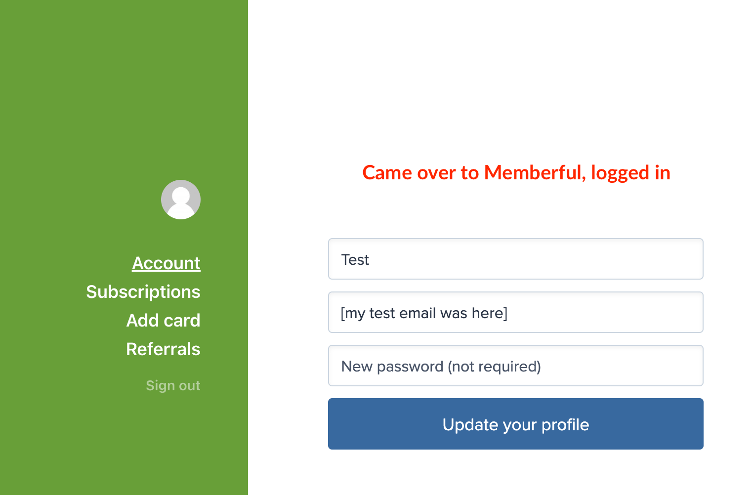 Thanks to @simon’s help, and the friendly team at Memberful, this is solved.
