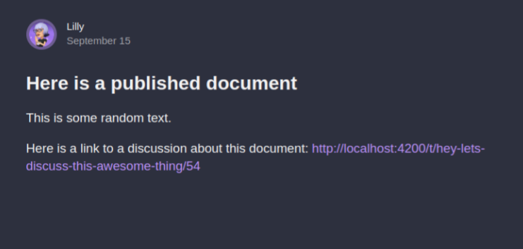 Oh could be, like the “View discussion on this topic” link in docs. Kinda like my screenshots above then, but only automatic. Doesn’t really make sense for page publishing, given how it works, you can link to a published page from countless places on the forum. I have links in my forum’s navigation sidebar menu that go to published pages. Perhaps some options for attaching published pages to topics for discussion could be a feature request? Almost sounds like they want some kind of embedded commenting.