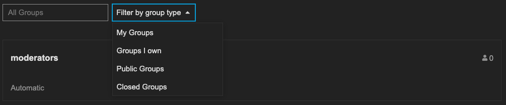 In a later post (the one preceding this one), I additionally advocate for providing the “Automatic Groups” option in the filter dropdown for all users, not just stafff users. I don’t think there is a good reason to hide it from non-staff users. (Note that no matter what is presented in the dropdown menu, the filter is still available to any user who can type the correct keyword into the URL bar.)