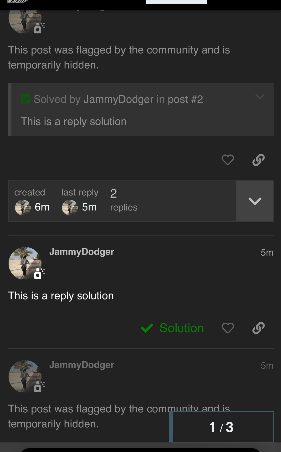 - The solution will appear grayed out as if it is the same element as a flagged post.